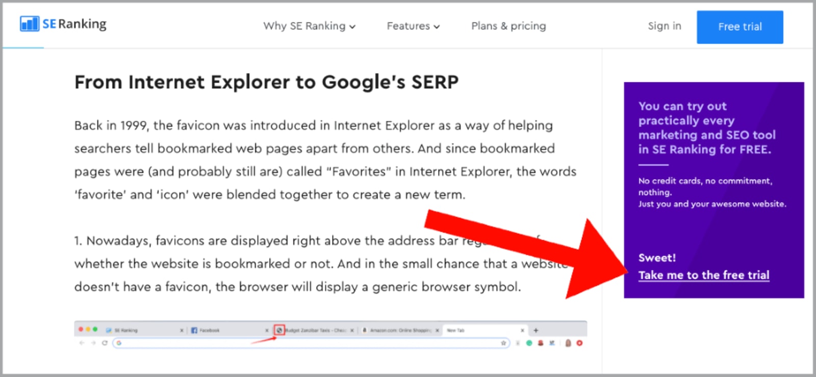 Sometimes all you need is to choose the right color that catches the users’ attention, take a look at this example from seranking.com.