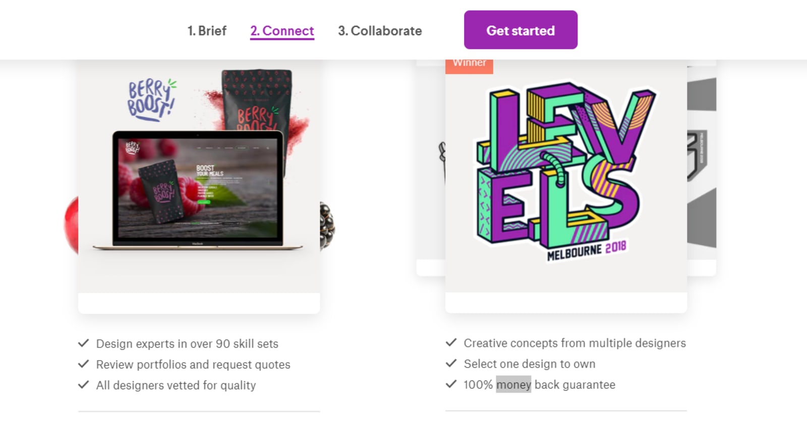 99designs is a popular crowdsourcing platform and among its selling points is its money back guarantee. Unfortunately, it is also among the costliest. If you’re looking for best deals without sacrificing the quality of the design, consider Delesign. It matches you with the suitable designer to complete your project at a more affordable price. Its service also comes with a 15-day money back guarantee.