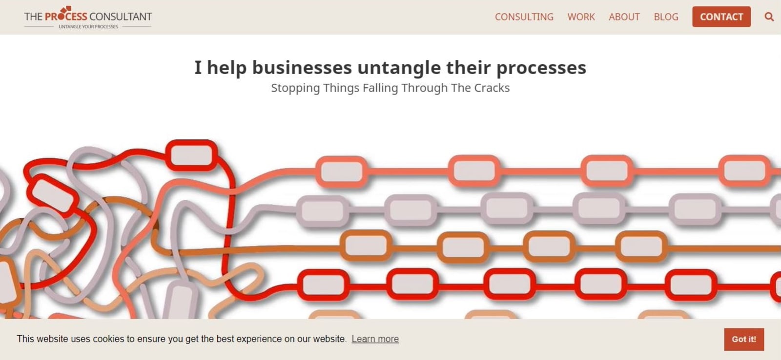 Similar to MORE Sales Advisors, The Process Consultant has a dated web design. Nonetheless, they use the homepage to showcase their process. This gives you the impression that they know what they are doing and how they can help your business.
