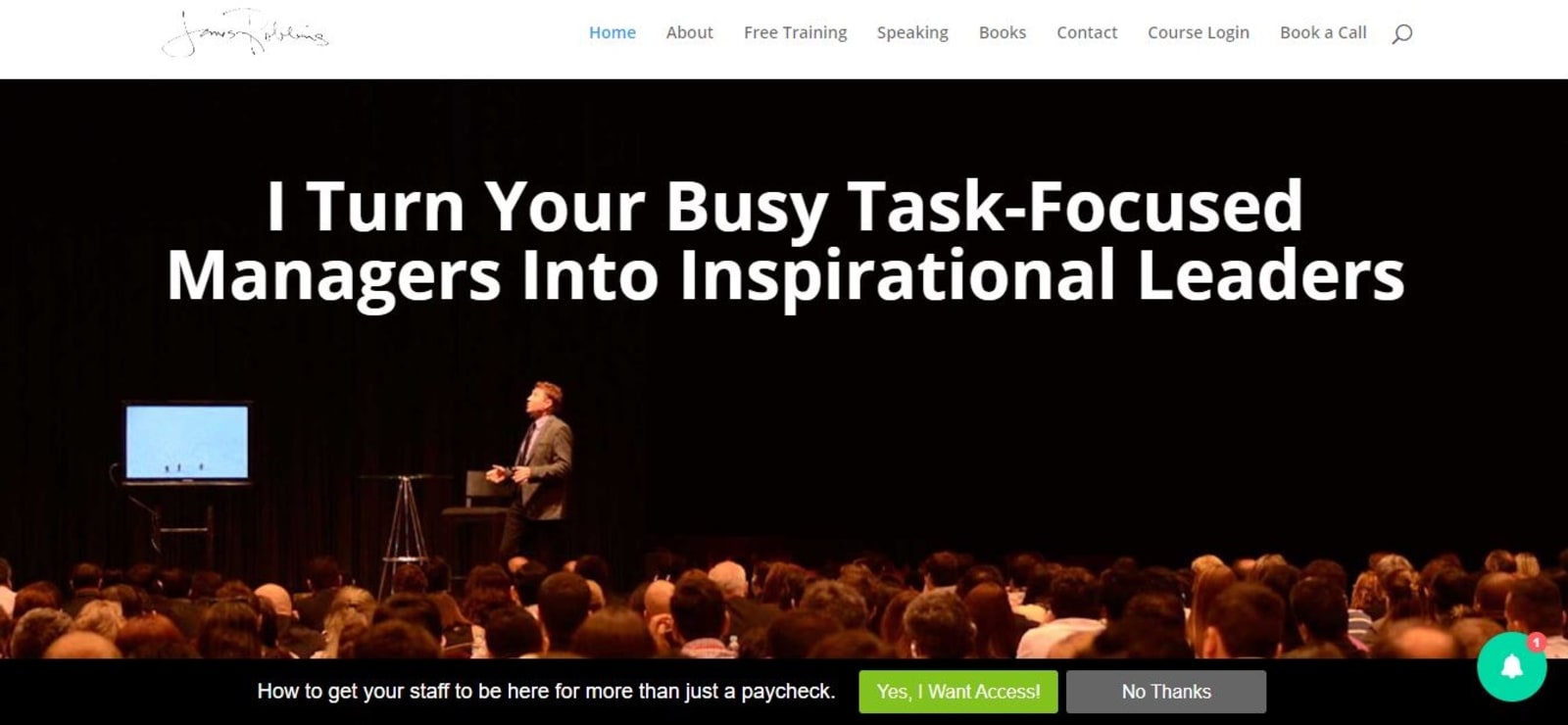 Other than the promotional pop-ups, James Robbins' website does not use too many fluffs. His hero banner is straight to the point, telling site visitors what he can do for them. No wonder it is included in our list of best consulting websites.