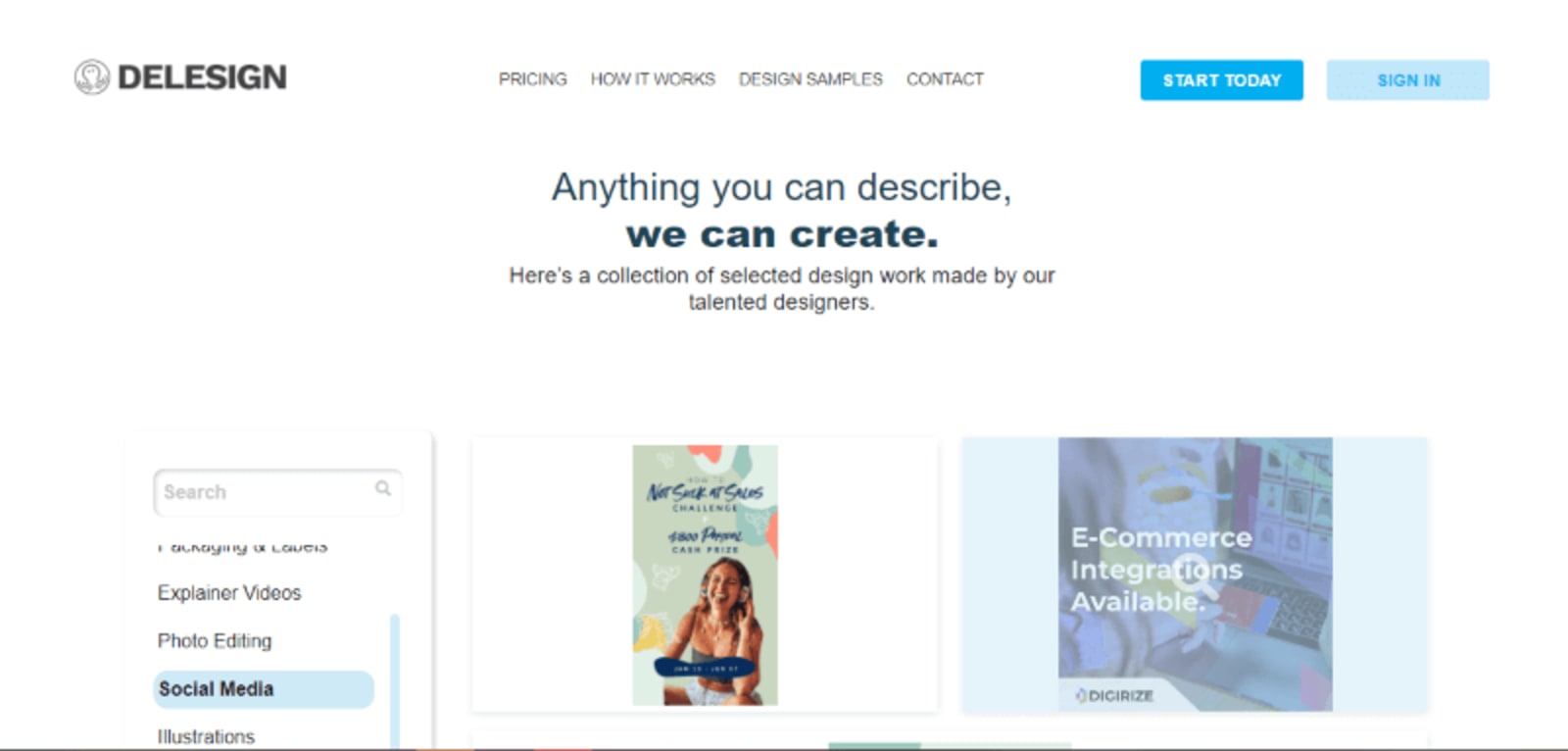 Delesign offers a wide range of designing services, including animation, mock-ups, editing of photos and videos, website ads, and more. With a subscription rate of $349 to $499 per month, clients can work with graphic designers round the clock.