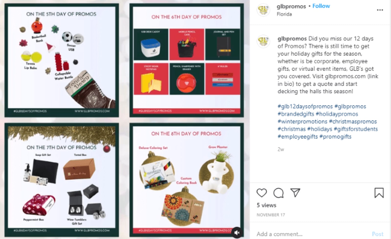 For instance, GLB posts its 12 days of promotions on Instagram, where various sets of items for each day can be purchased for a minimal price. It allows the targeted audience to check on products that they can avail for a limited time.