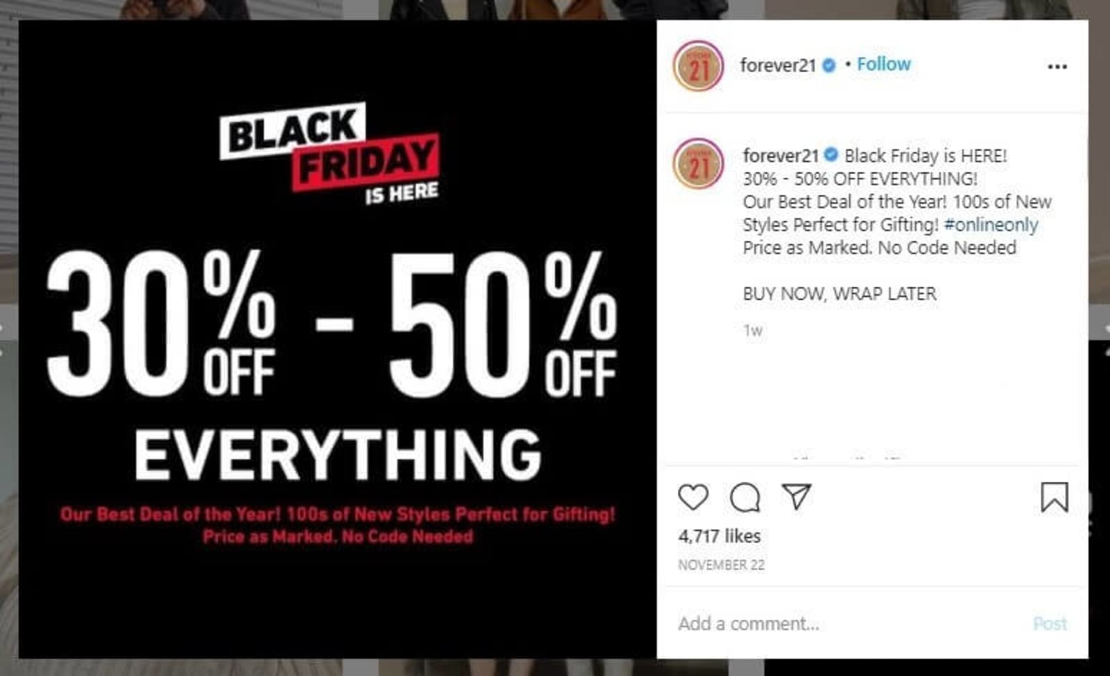 Forever21 posted this Black Friday Sale promotion on Instagram.