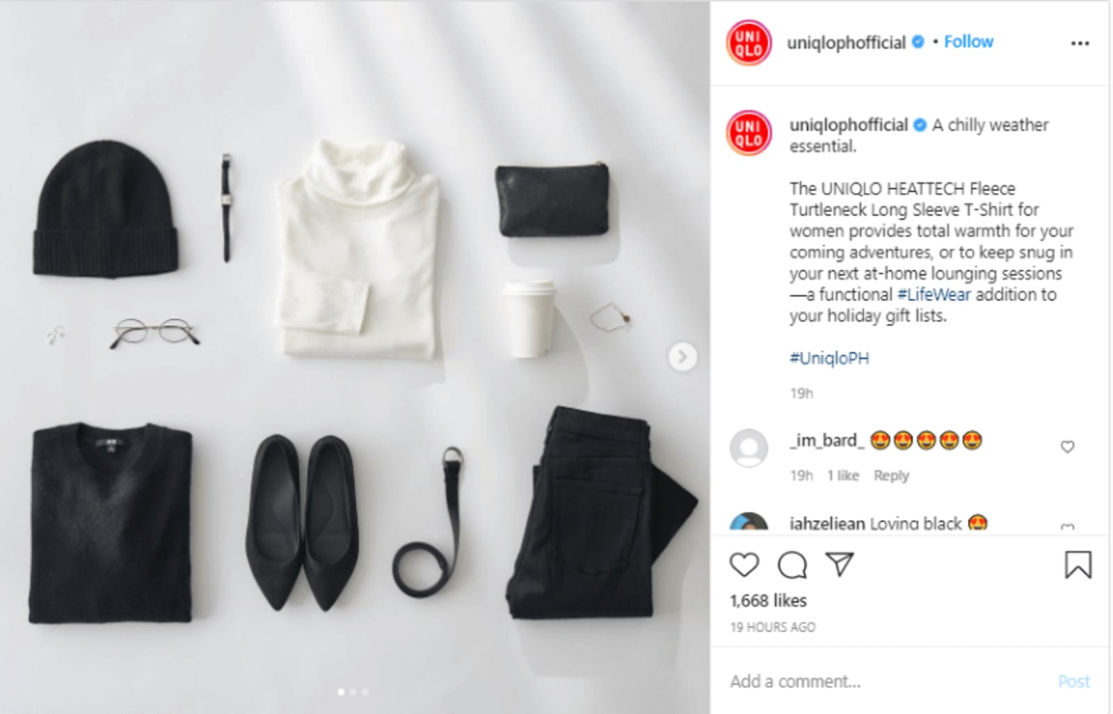 Uniqlo, an international brand, uses this marketing strategy to influence their potential buyers to try out different styles. Check out this sample style guide posted on Instagram.