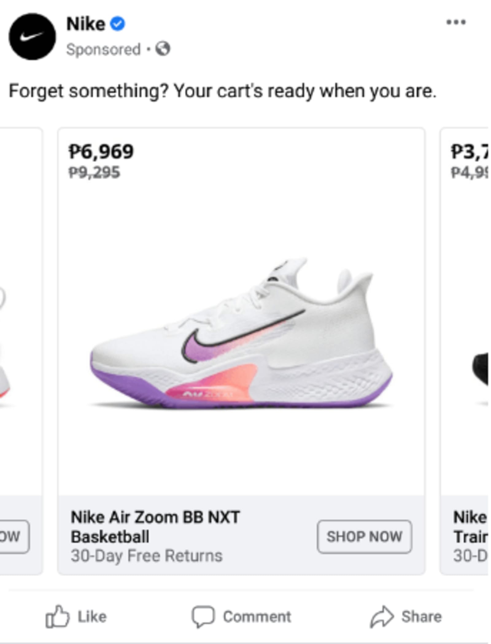 This ad by Nike reminds customers to check the items added on their shopping carts.