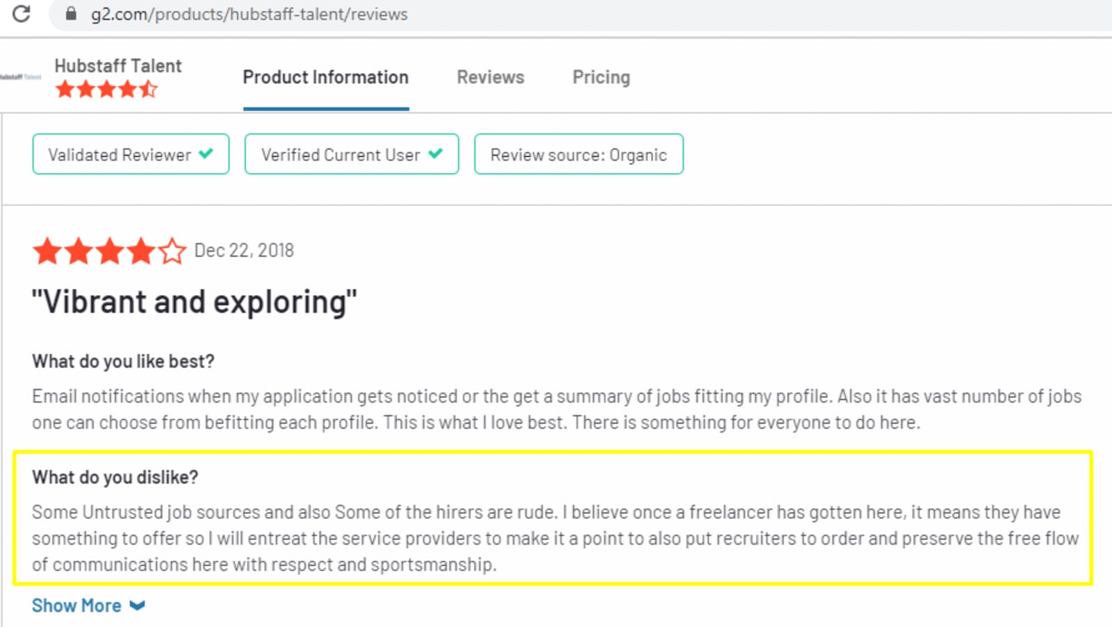 In one Hubstaff Talent review, one user reported finding jobs from untrusted sources and hirers. This inability to weed out untrusted employers makes hiring difficult and time-consuming.