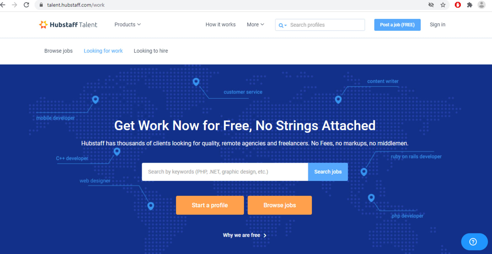 Started in 2012, Hubstaff Talent aims to help people to work better. It is currently representing 18 countries, with 60 remote team members, and has been serving over 34,000 customers. Signing up on this website is entirely free. It also does not need mediators and can function in any platform or browser.