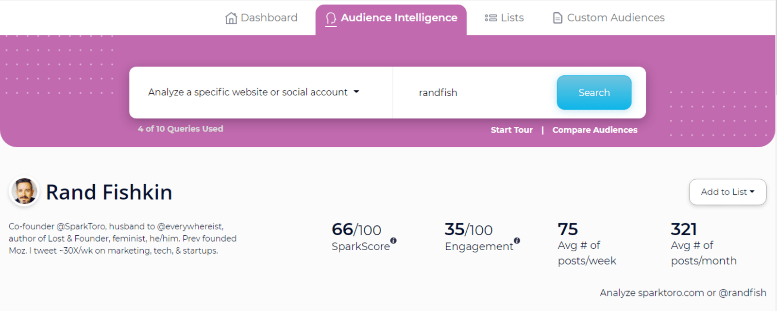 Rand’s active presence on Twitter, his popular blog (moz.com/rand) all helped SparkToro gain instant popularity when it was launched.