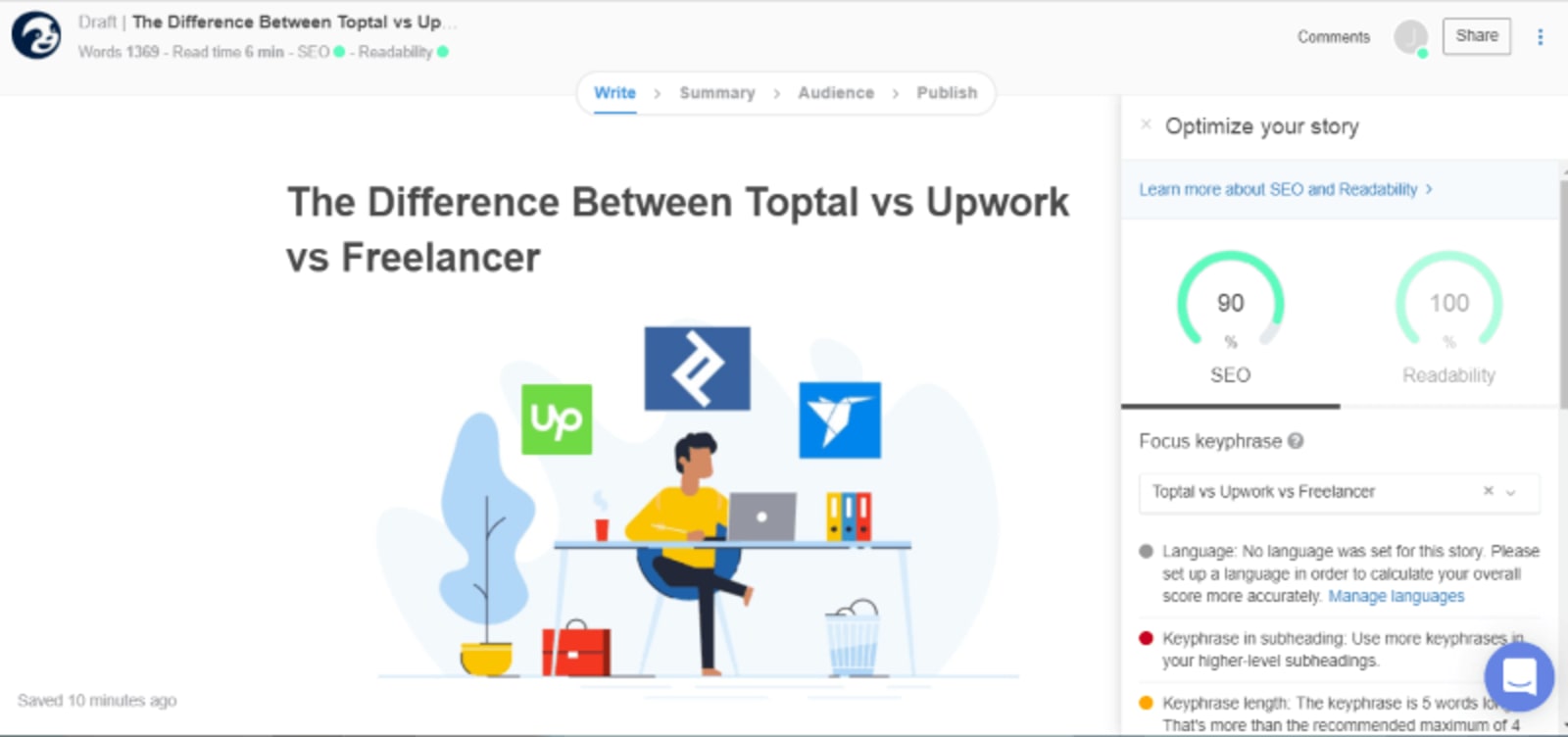 To sum it up, we believe that Toptal works best if you are looking for skilled and talented freelancers. But, if you are working on a low-end project and focus on a reliable hiring process, then consider using Upwork. Finally, Freelancer is the best place to build your career as they also provide great opportunities for newbies.