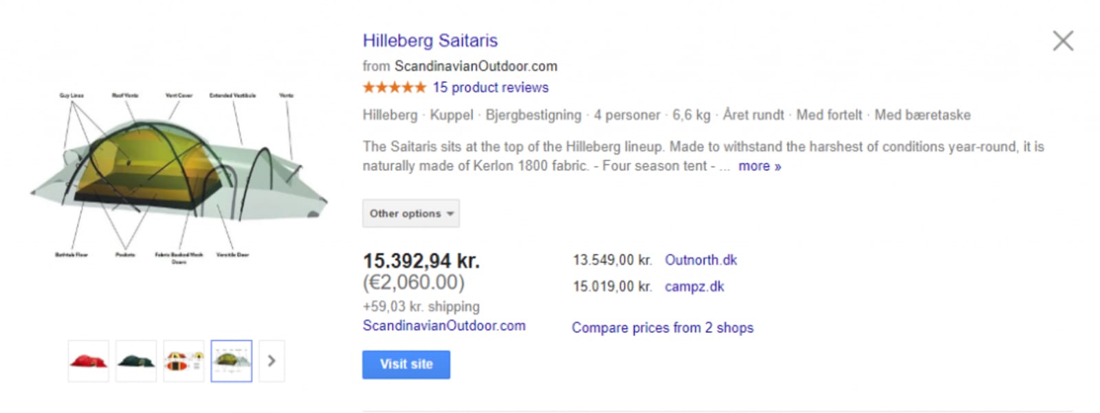 Google recommends that you take this opportunity to use additional images to show the product in a different light – perhaps out of its packaging, being used, a bird’s-eye view or a labelled plan of the product (see screenshot below).