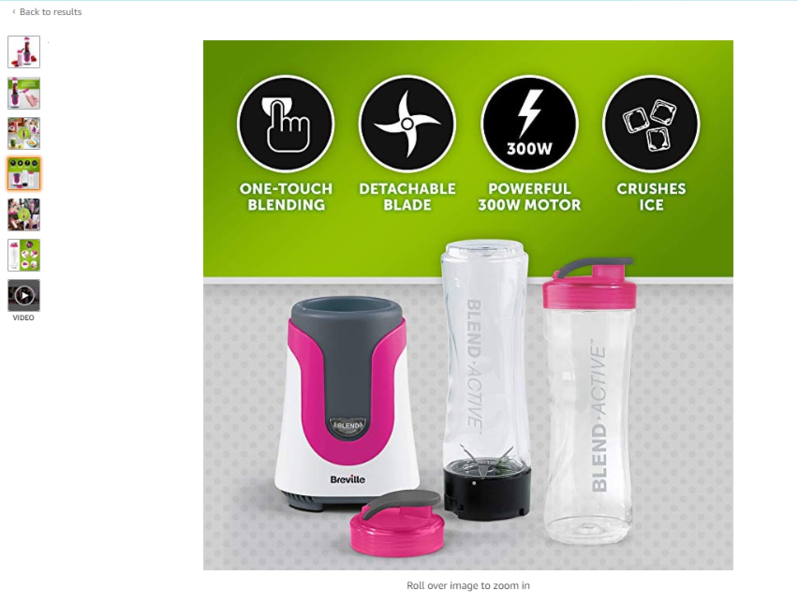 This is the image which will be displayed on Amazon’s search results. Similar to Google Shopping (as we’ll see later), it’s generally recommended to use a white background, and make sure the image fills 80% of the frame (image below).