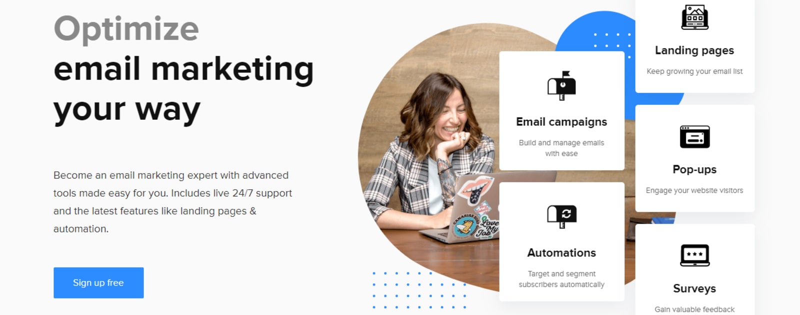 They have Landing Page features that can get more people to sign up and work with dedicated managers as well. These emails are created based on the customer list you create, with pop-ups for visitors as well. Mailerlite is an excellent software to begin with because it drives visitors to your website.