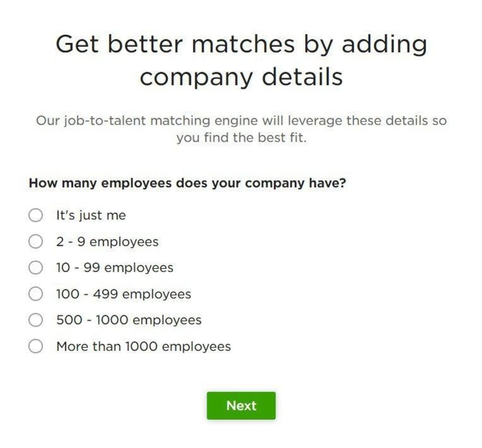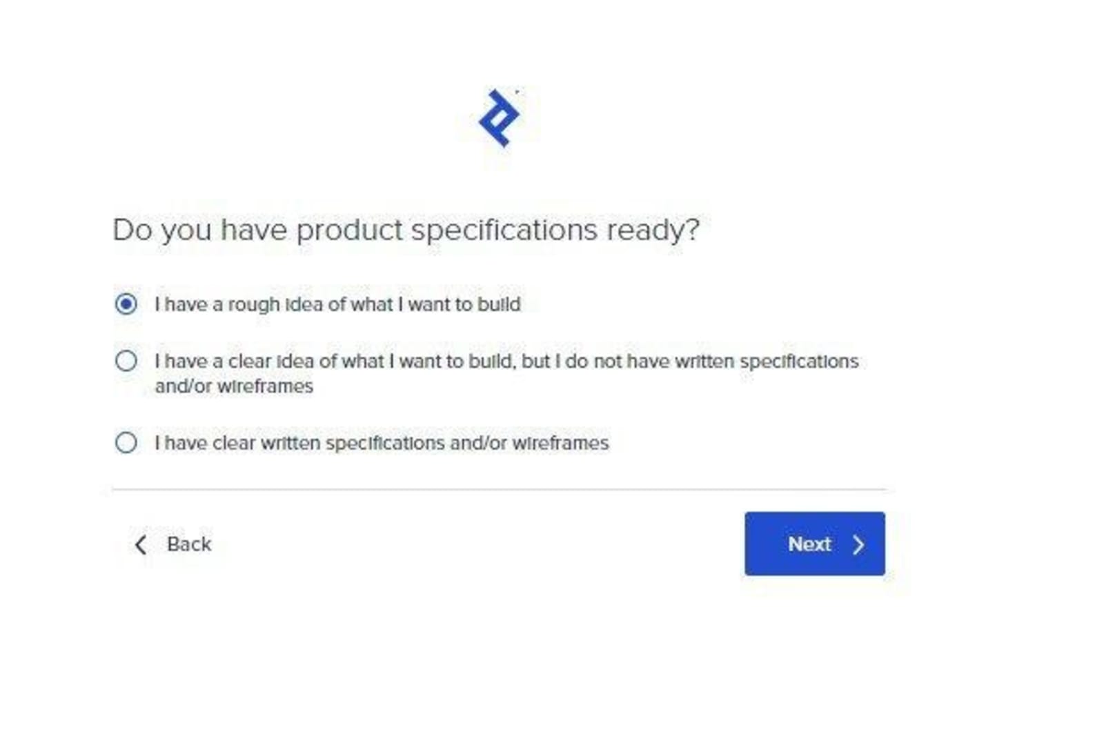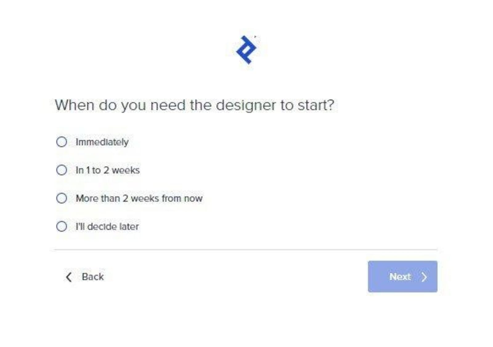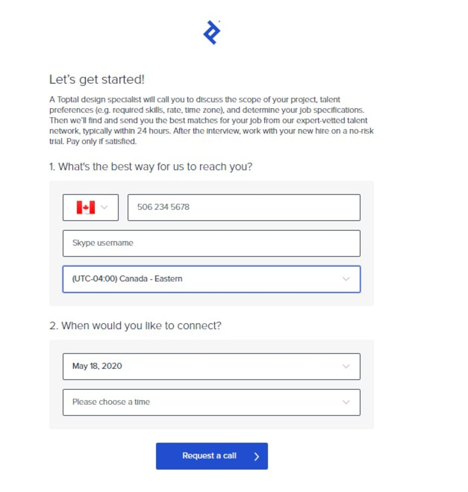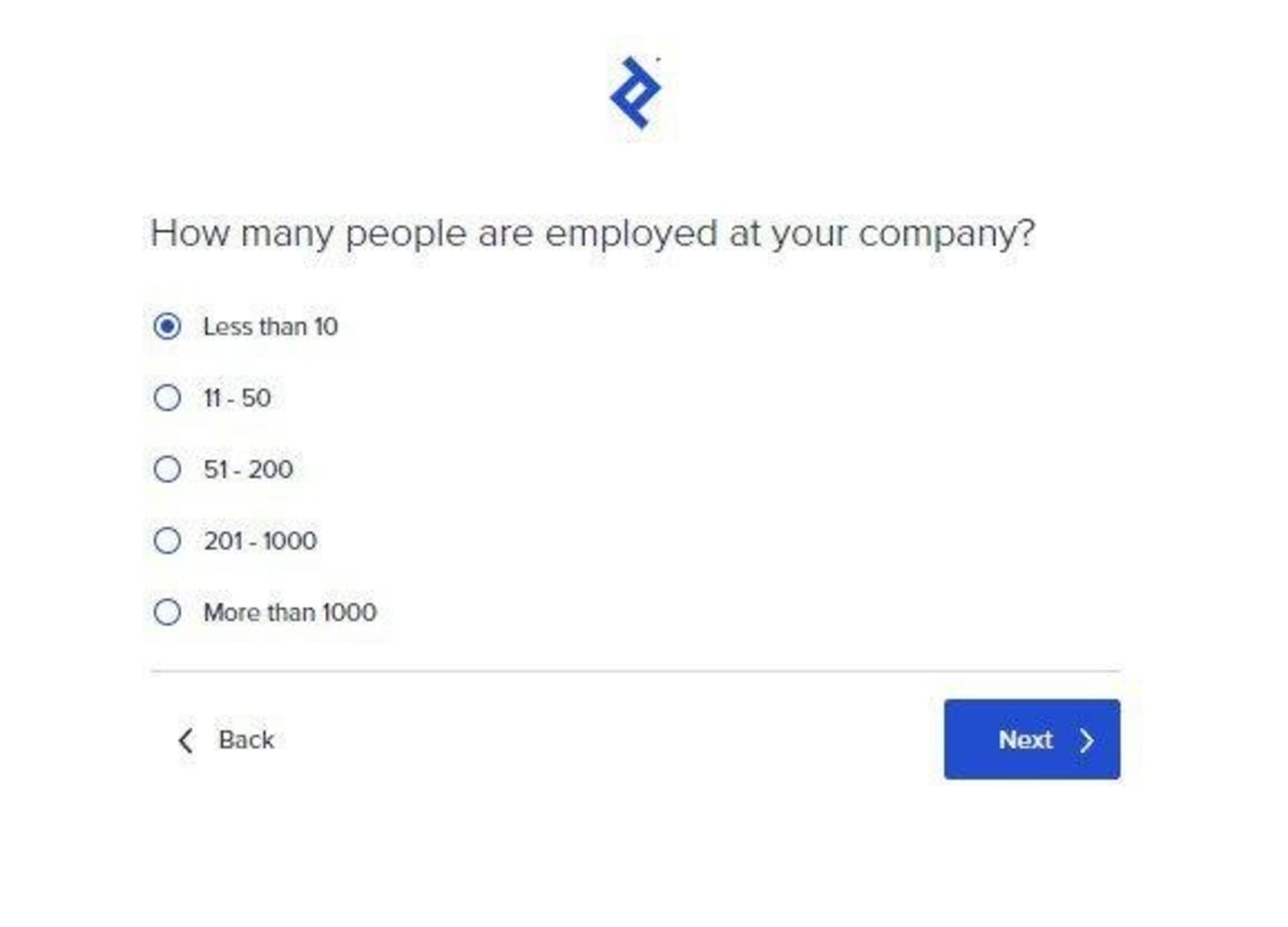 Now, Toptal has a completely different account creation process. Instead of filling our details first, we had to answer about 12 questions around the project and our company.