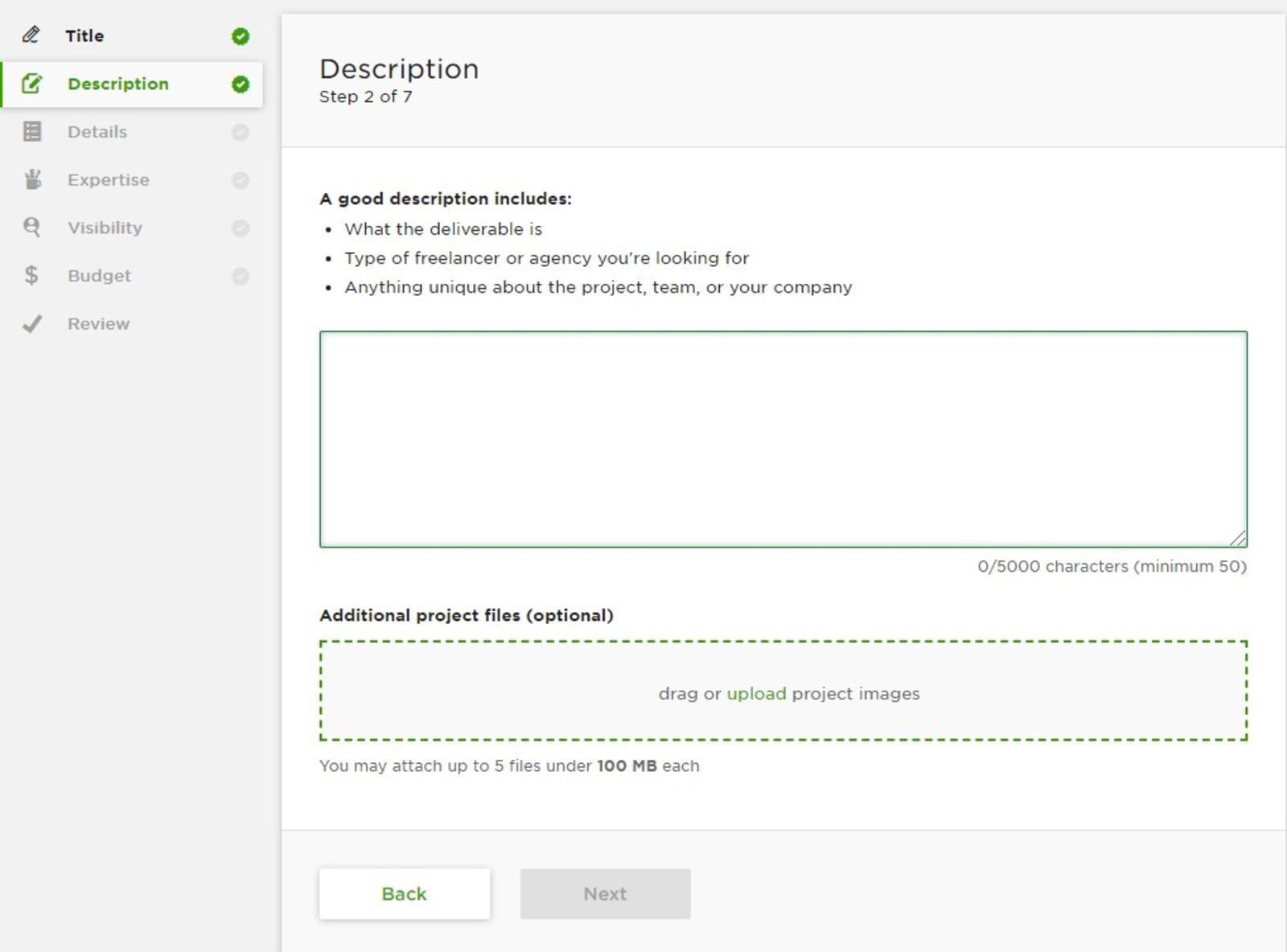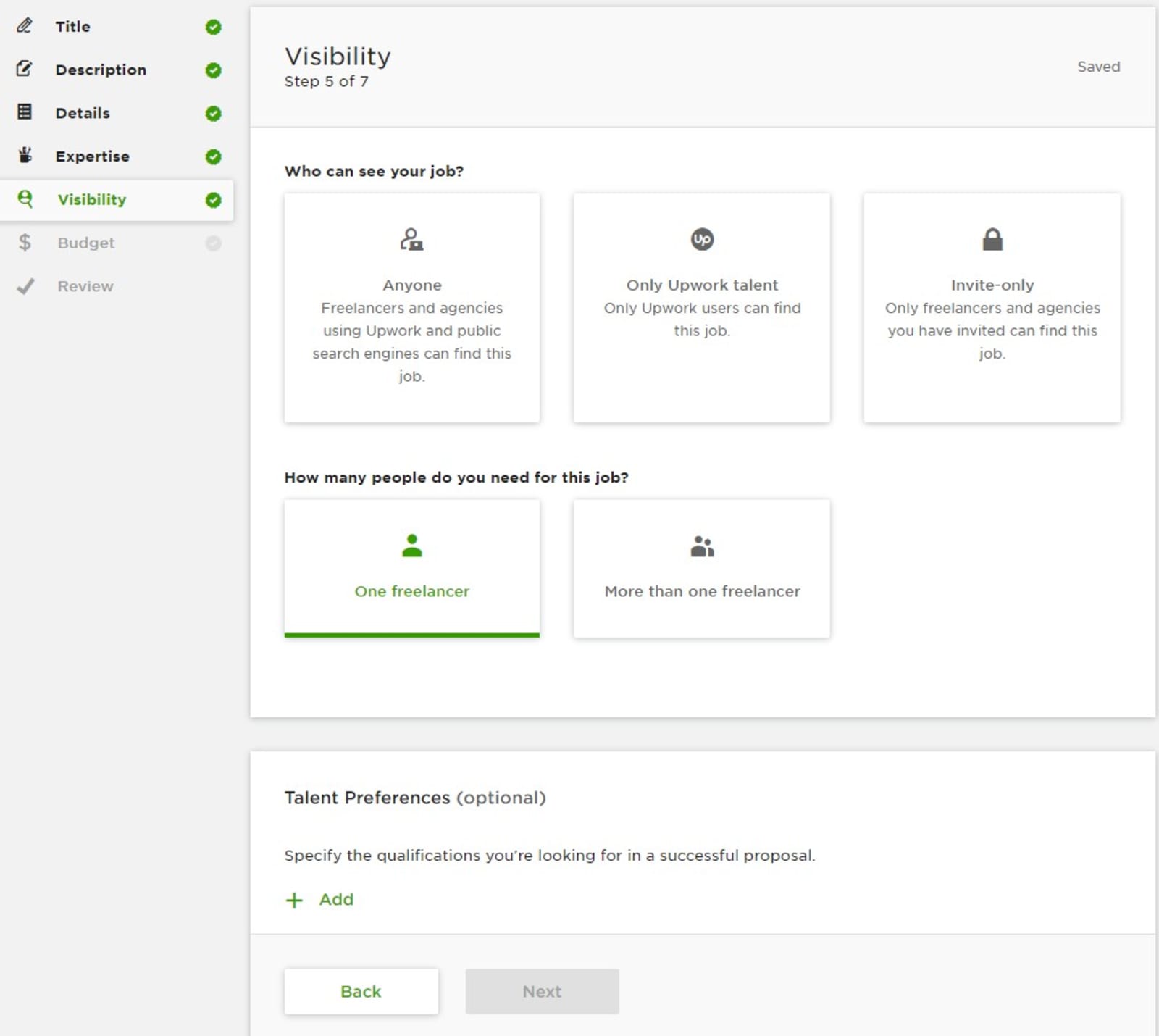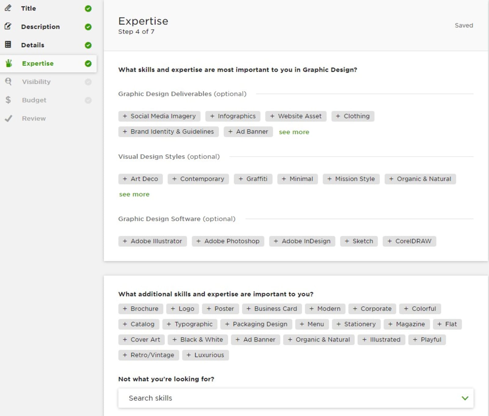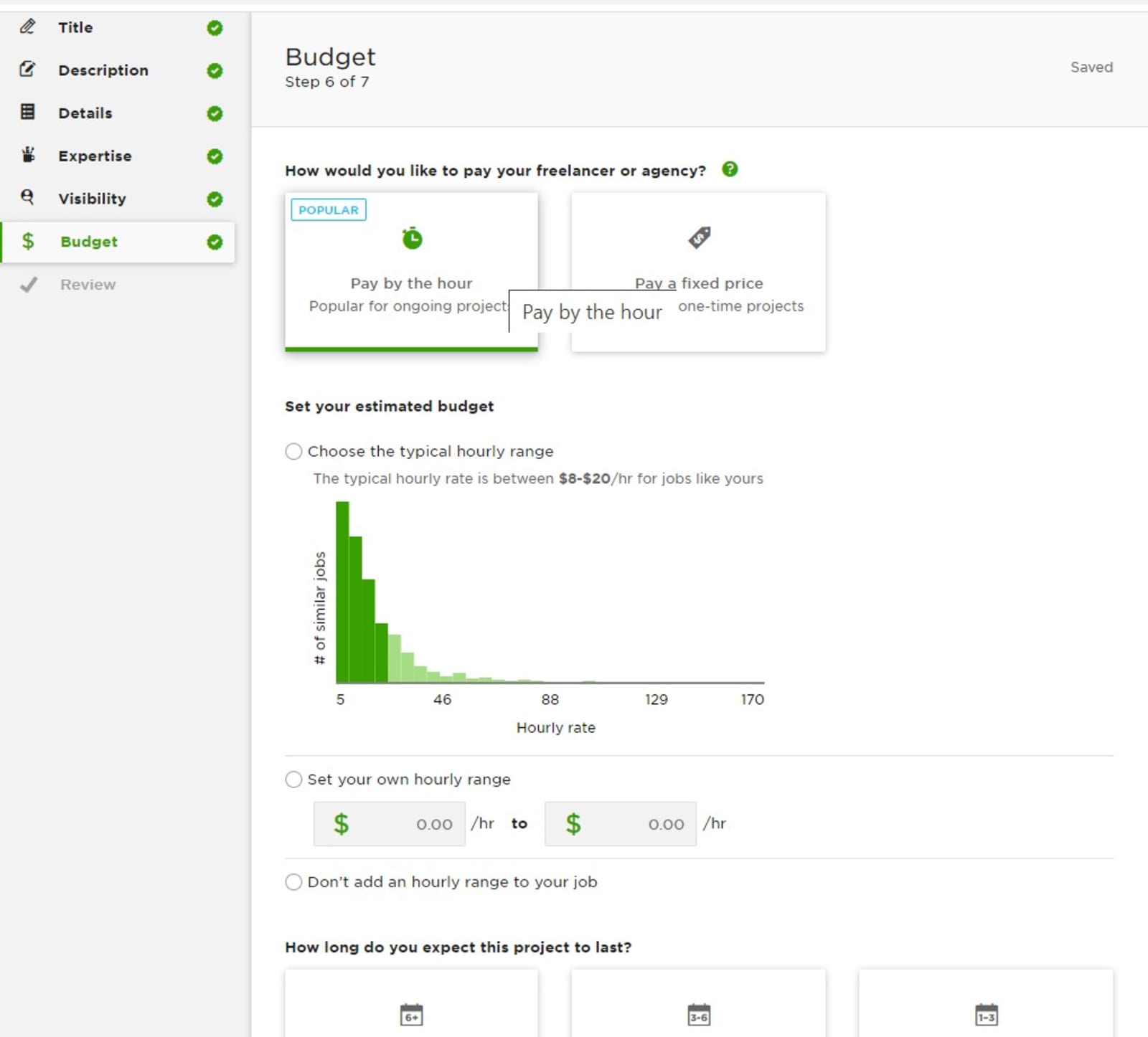 However, for Upwork, we were generally left to our own devices to recruit the needed graphic designer. We had to go through a 7-stage process to put up a job ad on the role, budget and skillset required.