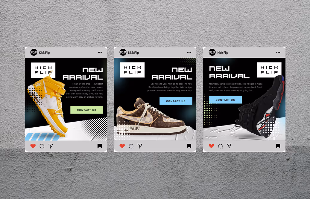 Get high-performing ads designed to stop the scroll and spark engagement. Whether it’s Instagram, Facebook, LinkedIn, or TikTok, your designer creates platform-ready visuals that match your brand and move the needle.