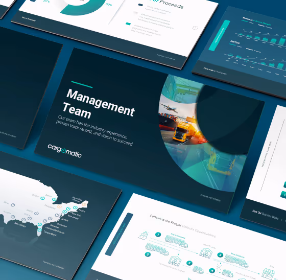 Deliver a pitch that gets noticed. Your deck will feature clear messaging, clean visuals, and a sharp layout. Ideal for investor meetings, pitch days, or strategic conversations.